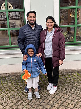 Bild 2: Unsere Mitarbeiterin Anu Jacob (Pflegefachkraft im EKH Pflegeheim Zwönitz) mit Ehemann Abraham Sinto und den beiden Kindern Anson Sinto und Anmiya Sinto