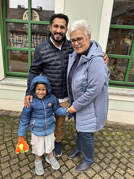 Bild 3: Frau Karin Wartig, Betreuerin für ausländische Mitarbeiter mit Herrn Jaison Jose und Tochter Josiah Jaison Jose