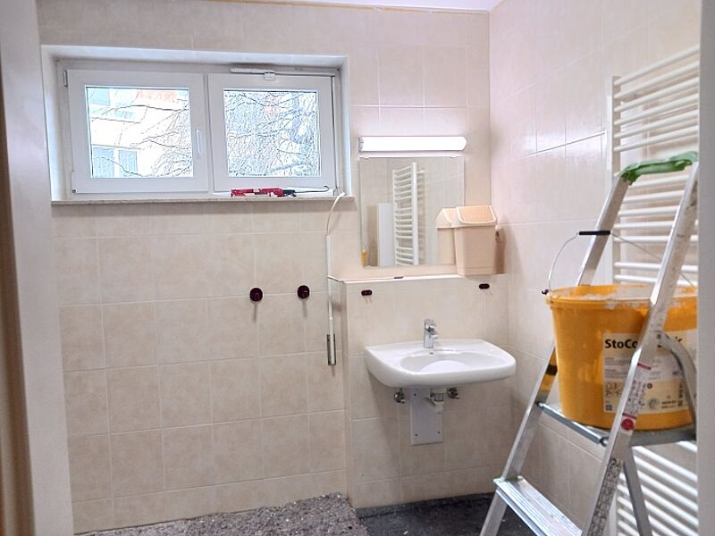 Neben den äußerlich sichtbaren Arbeiten finden auch im Innenbereich stetig handwerkliche Tätigkeiten statt: Damit sich jeder bei uns wohlfühlt, werden die jeweiligen Zimmer tiefensaniert (Tapezieren, Streichen, ggf. Fußbodenaufbereitung, usw.), bevor wir neue Bewohner empfangen.