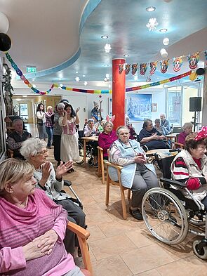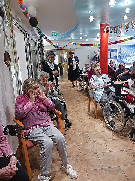 Nach einem leckerem Kaffeegedeck erwartete unsere Bewohner ein Theaterstück der besonderen Art: "Der Streit der Jahreszeiten" erzählte die Geschichte von Streit, Selbstsucht und Vertragen. Das Betreuungsteam überzeugte wieder einmal mit tollen Kostümen und Requisiten und brachte unsere Bewohner zum Lachen.