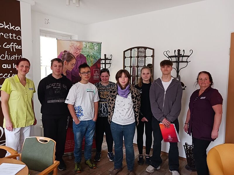 Schüler der Klasse 9 von der Oberschule "Katharina Peters" kamenvom 7. Februar bis 9. Februar 2017 in das EKH-Pflegeheim in Zwönitz, um einen Einblick in die Anforderungen und die Berufsbilder im Pflegealltag zu gewinnen.